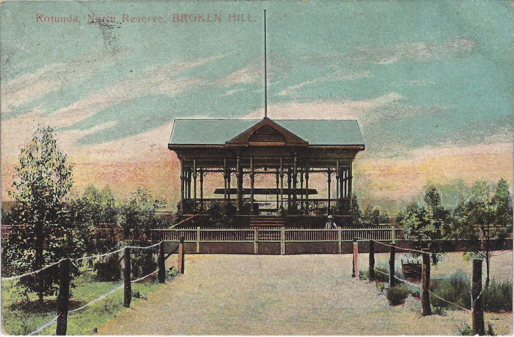 Postcard: Rotunda, North Reserve, Broken Hill, 1918. (Source: Jeremy de Korte Collection)