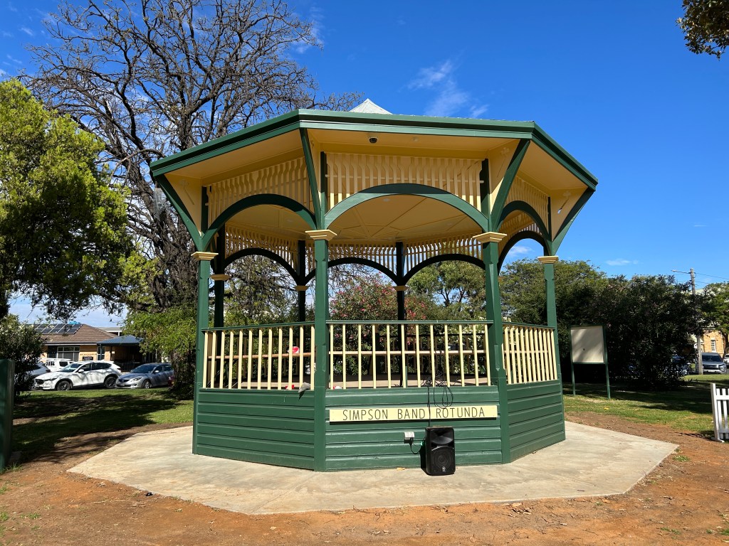 de Korte, J. D. (2023). Deniliquin, N.S.W. : Waring Gardens : Simpson Band Rotunda [Photograph]. [IMG_8417]. Jeremy de Korte, Braddon, A.C.T.