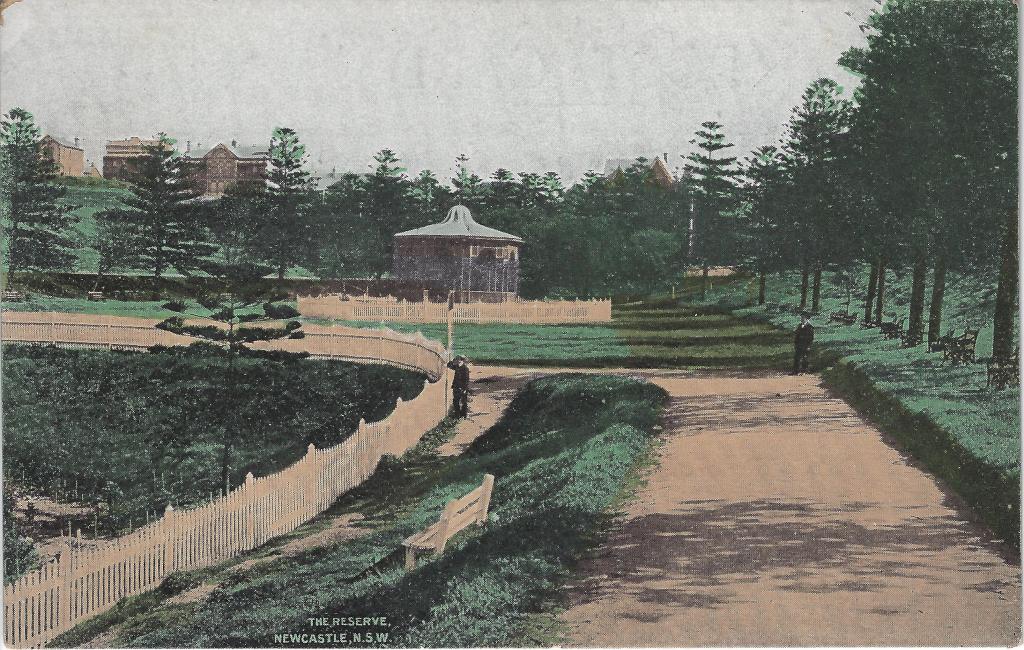 Crofts, F. G. (n.d.). The Reserve and Band Stand, Newcastle [Postcard]. [107]. F. G. Crofts, Newcastle, N.S.W.