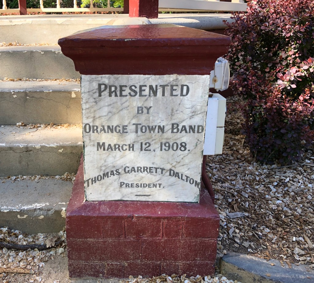 Photograph: Cook Park Rotunda – Orange Town Band plaque. (The photograph was taken by Jeremy de Korte, 20/10/2019)