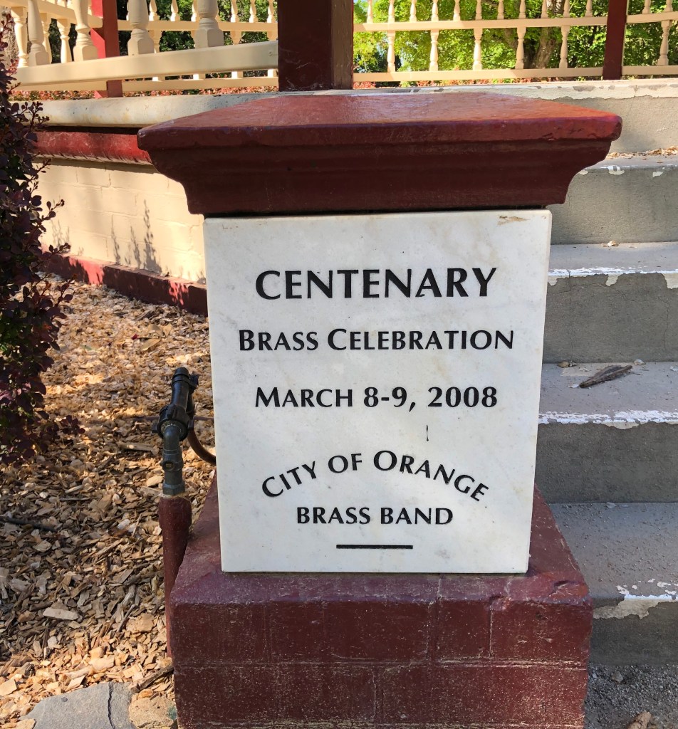 Photograph: Cook Park Rotunda – City of Orange BrassBand – Centenary Brass Celebration plaque. (The photograph was taken by Jeremy de Korte, 20/10/2019)
