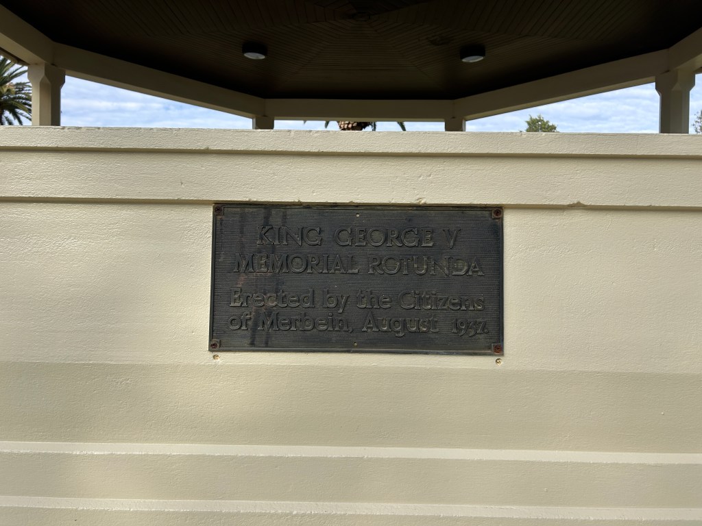 de Korte, J. D. (2025b). Merbein, Vic. : King George V Memorial Band Rotunda – Plaque [Photograph]. [IMG_1131]. Jeremy de Korte, Mildura, Victoria.