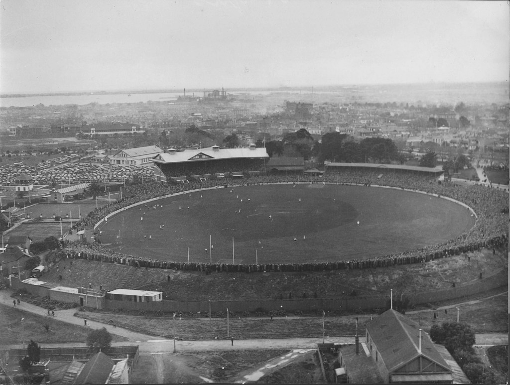 Garrett, W. R. (c1930). [Aerial view of South Melbourne Cricket Ground] [picture] [photograph : gelatin silver]. [pi000443]. State Library Victoria, Melbourne, Victoria. http://handle.slv.vic.gov.au/10381/336815