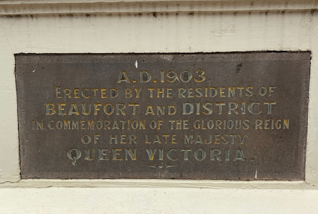 Photograph: Queen Victoria Memorial Band Rotunda – Citizens Plaque, Beaufort. (The photograph was taken by Jeremy de Korte, 30/12/2020)