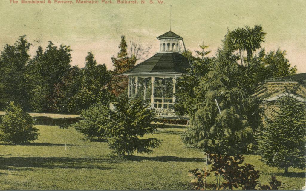 Lenes, F. (1907). Band-stand, Machattie Park, Bathurst [Postcard]. Miss F. Lenes, Bathurst, N.S.W.