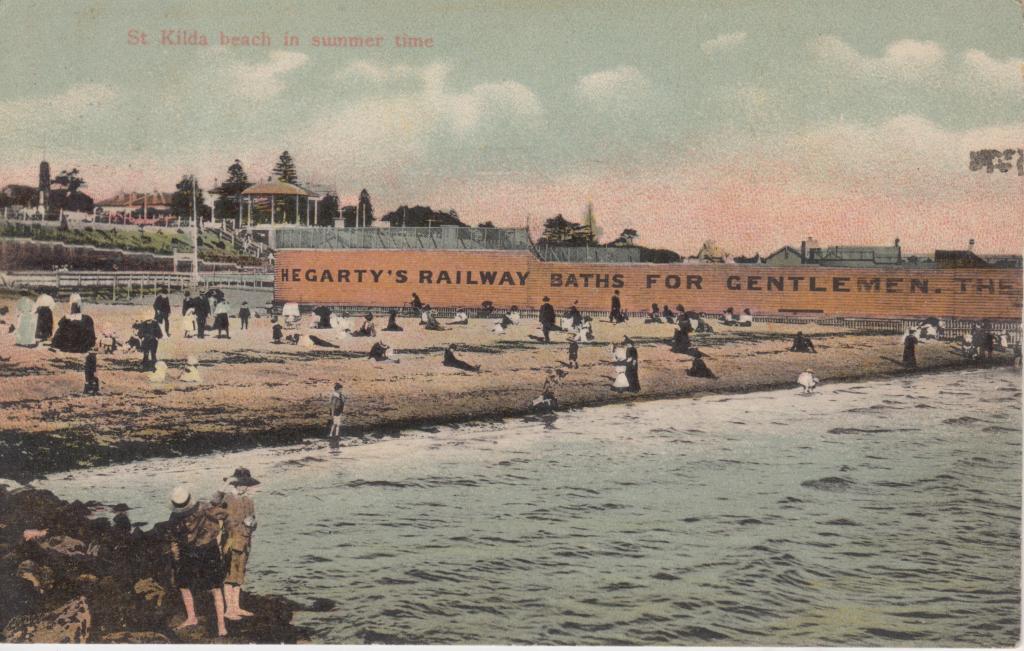 Postcard: St. Kilda beach in summer time, 1909. (Source: Jeremy de Korte Collection)