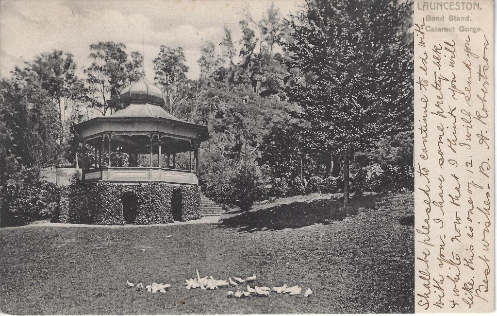 Postcard: Band Stand, Botanical Gardens, Maryborough, 1908. (Source: Jeremy de Korte Collection)