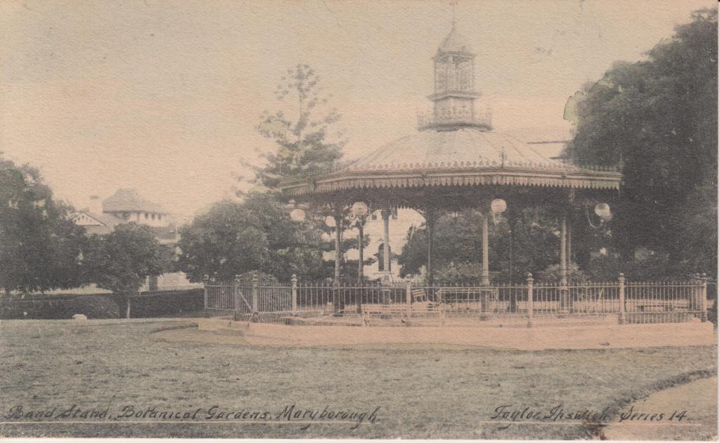 Taylor, B. H., & Taylor, L. J. (1908). Band Stand, Botanical Gardens, Maryborough [Postcard]. [Taylor Ipswich Series 14]. I.X.L. Studio, Ipswich, Queensland.
